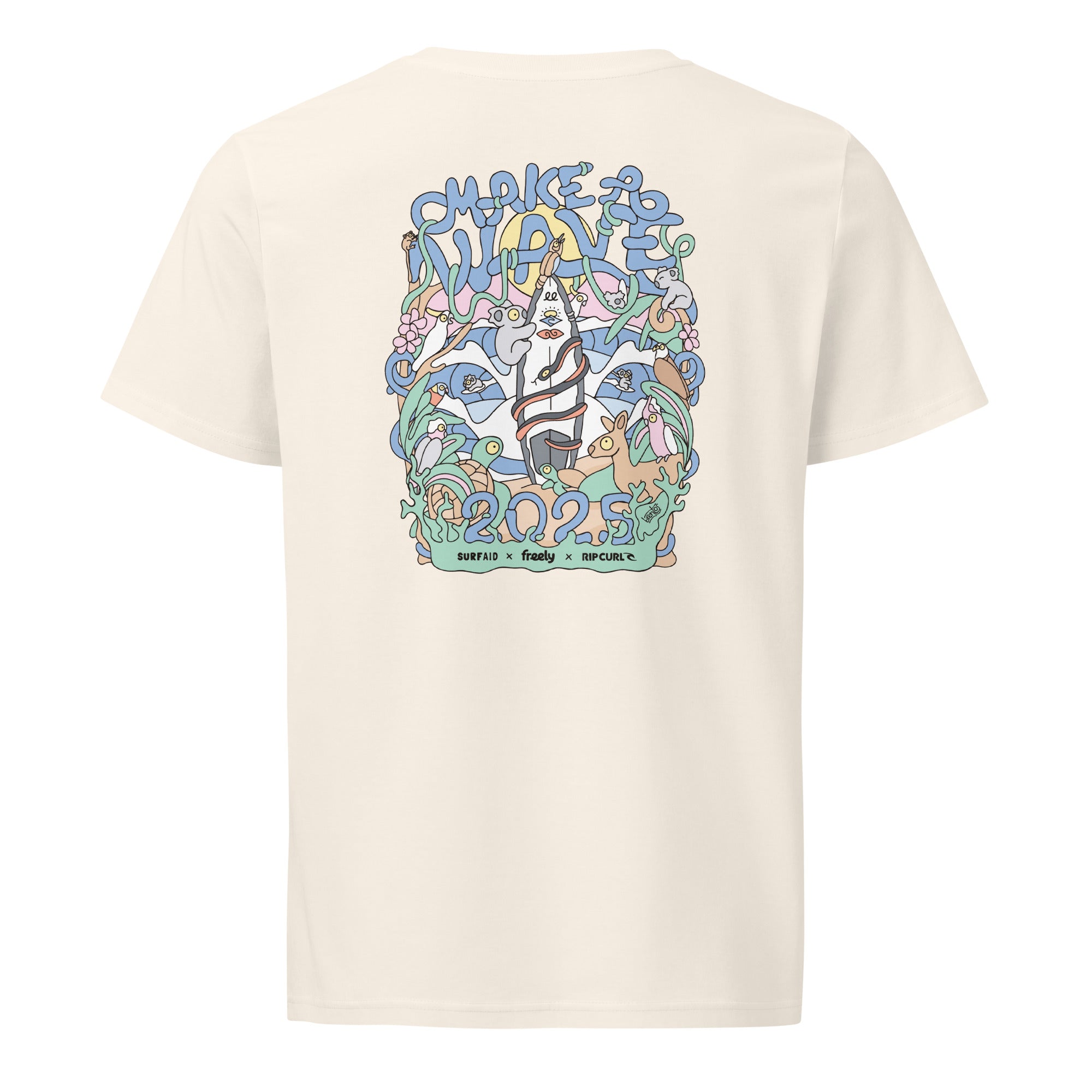 Amplify your impact in the Make A Wave Challenge 2025 with this limited-edition t-shirt designed in collaboration between Freely, SurfAid and Sydney-based illustrator legend, Brentos.